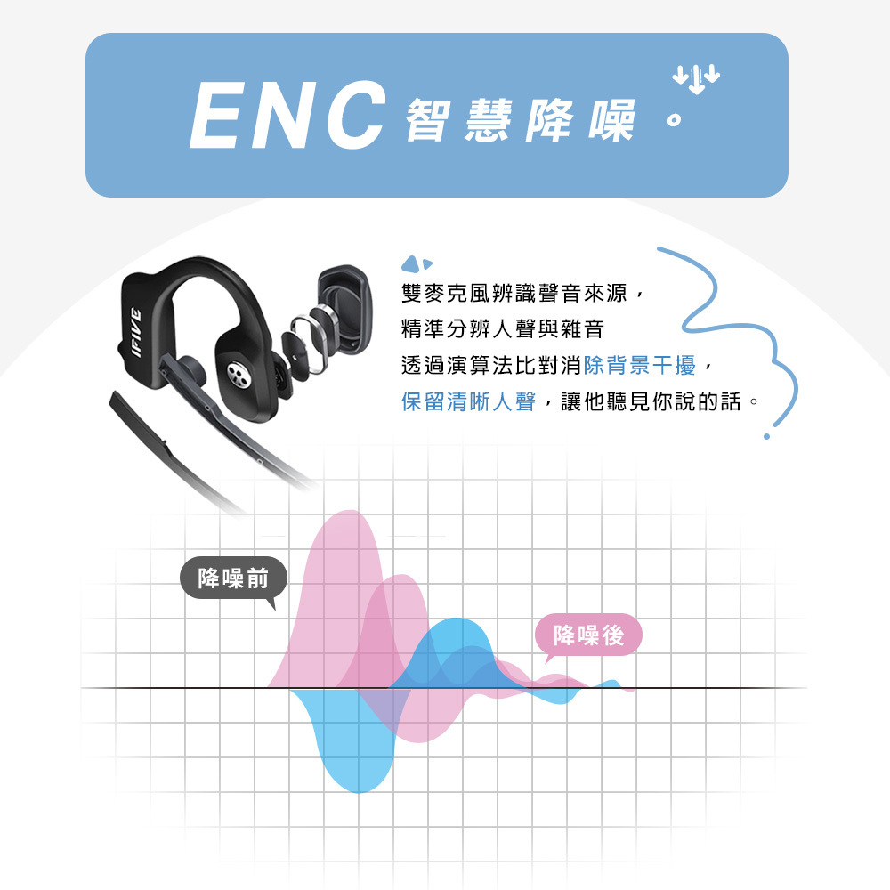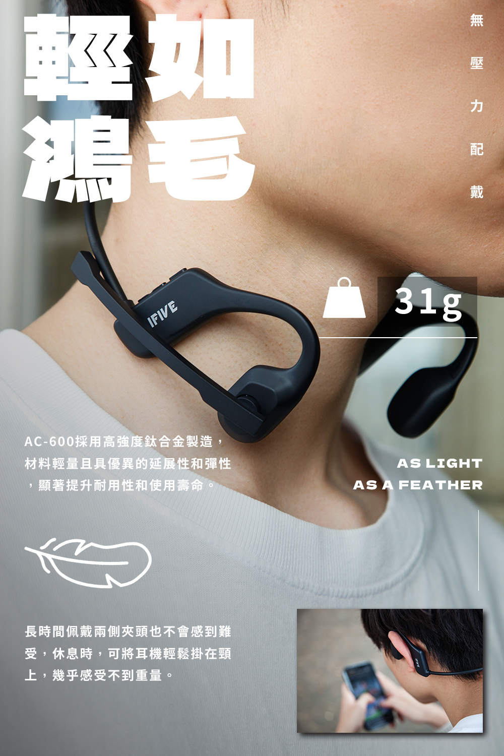 | 產品規格 | 藍牙版本:Bluetooth 5.3 充電輸入:DC5V/1A 工作頻率:20(kHz) 電池容量:180mAh 有效距離:>10M 使用時間:約14-16小時 充電時間:約2小時 產品重量:31g 產地:中國 |