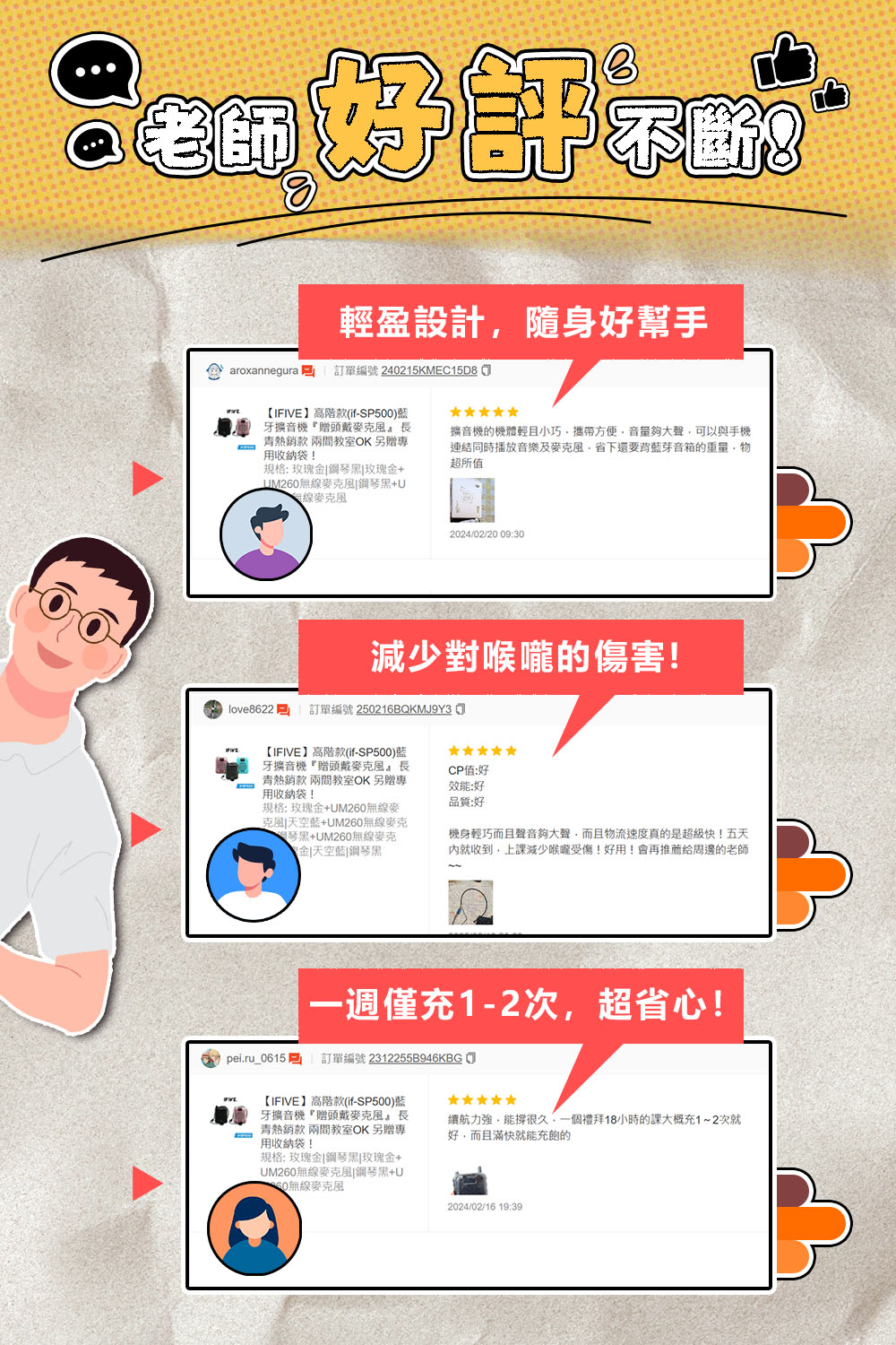| 保固期 | 擴音機本體保固12個月、配件(麥克風、電池、充電線、背帶)保固3個月(人為損壞不在保固範圍內 |