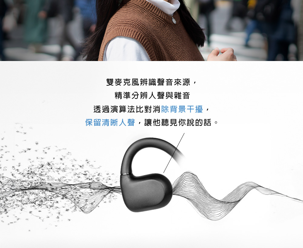 | 產品規格 | 輸入電壓:DC5V/1A 標準配件:氣動傳導藍牙耳機本體、USB充電傳輸線、使用說明 |